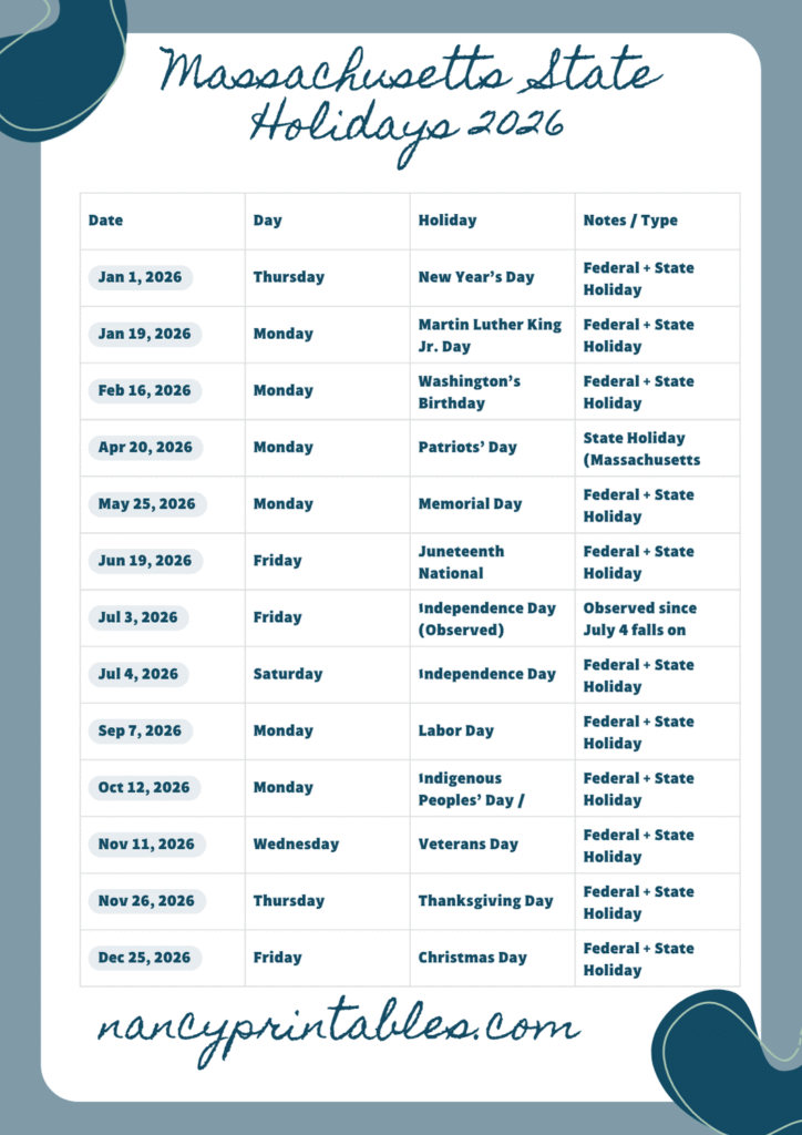 Downloadables Massachusetts State Holidays 2026 PNG PDF Get Printed (Shop) Massachusetts State Holidays 2026 PNG PDF Get Printed (Shop) Massachusetts
