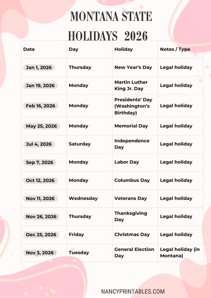 Montana State Holidays for 2026 PNG PDF Get Printed (Shop) Montana State Holidays for 2026 PNG PDF Get Printed (Shop)